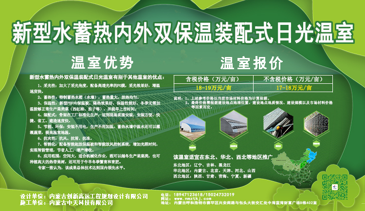 1. 通過創新示范,推廣成熟的專利集成技術及產品,總結制定本地區水蓄熱內外雙保溫裝配式日光溫室的設計及建設標準,促進蔬菜產業轉型升級。