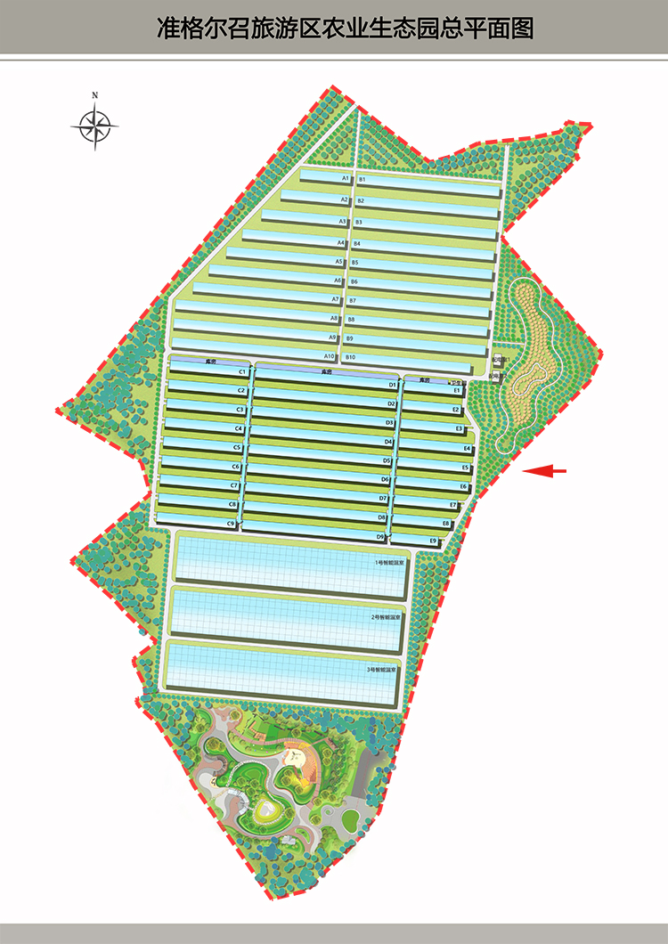 準(zhǔn)格爾召旅游區(qū)農(nóng)業(yè)生態(tài)園二期項(xiàng)目位于一期項(xiàng)目以南,主要建設(shè)國(guó)內(nèi)技術(shù)領(lǐng)先的水蓄熱內(nèi)保溫裝配式日光溫室27棟,總建筑面積約45000平方米(約67.5畝),預(yù)計(jì)2021年10月份建成并正式投入運(yùn)營(yíng)。