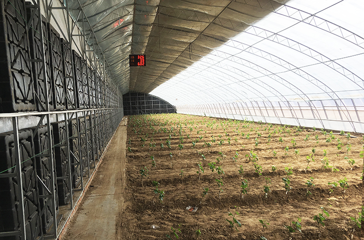 水蓄熱內(nèi)保溫裝配式日光溫室是由內(nèi)蒙古農(nóng)業(yè)大學(xué)與內(nèi)蒙古中天科技有限公司聯(lián)合研發(fā)完成,并已在東北、西北、華北等地區(qū)進(jìn)行了大面積的示范推廣。該溫室集成了10多項(xiàng)國家專利技術(shù),實(shí)現(xiàn)了北方寒冷地區(qū)冬季不加熱正常生產(chǎn)果菜類蔬菜,對(duì)于推動(dòng)設(shè)施蔬菜產(chǎn)業(yè)發(fā)展及帶動(dòng)當(dāng)?shù)剞r(nóng)民增收致富有著非常重要的意義,該溫室具備以下特點(diǎn):