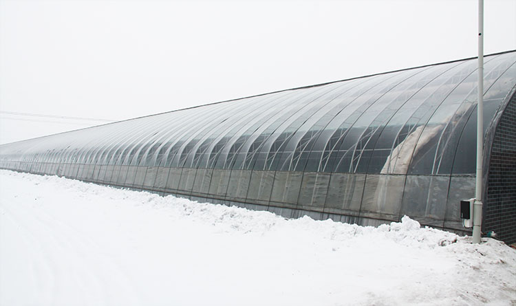 3、保溫性:雙膜單被,隔熱保溫好。晴天,外界-30℃下,棚內(nèi)溫度可以達(dá)到8℃以上。冬季不加溫可以進(jìn)行果菜類生產(chǎn)。
